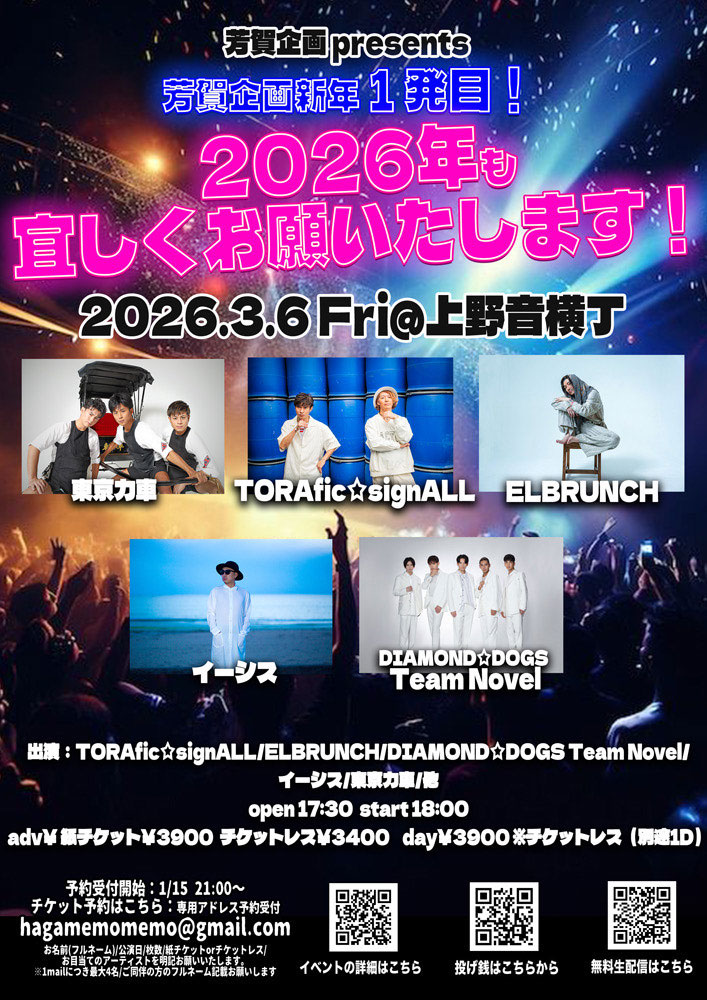 1.専用予約アドレス予約 紙チケット希望の方 ※open10分前に入場順抽選