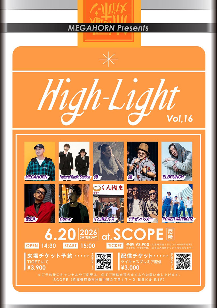 ELBRUNCH/ MEGAHORN/Natural Radio Station/侍/強/世史久/Gon-z/イチゼンバッカー/くん肉まんズ/POWER WARRIORZ